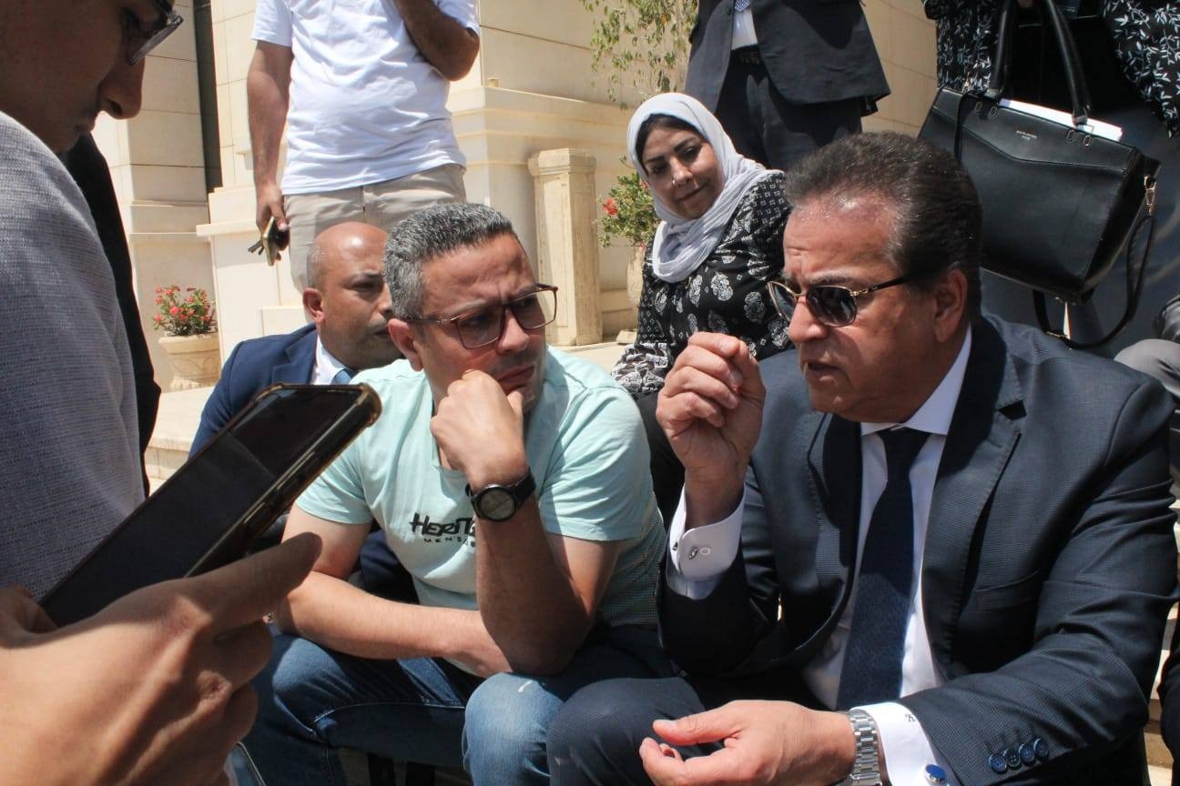 على سلالم الوزارة بكل حب وتواضع.. خالد عبد الغفار يستمع للصحفيين