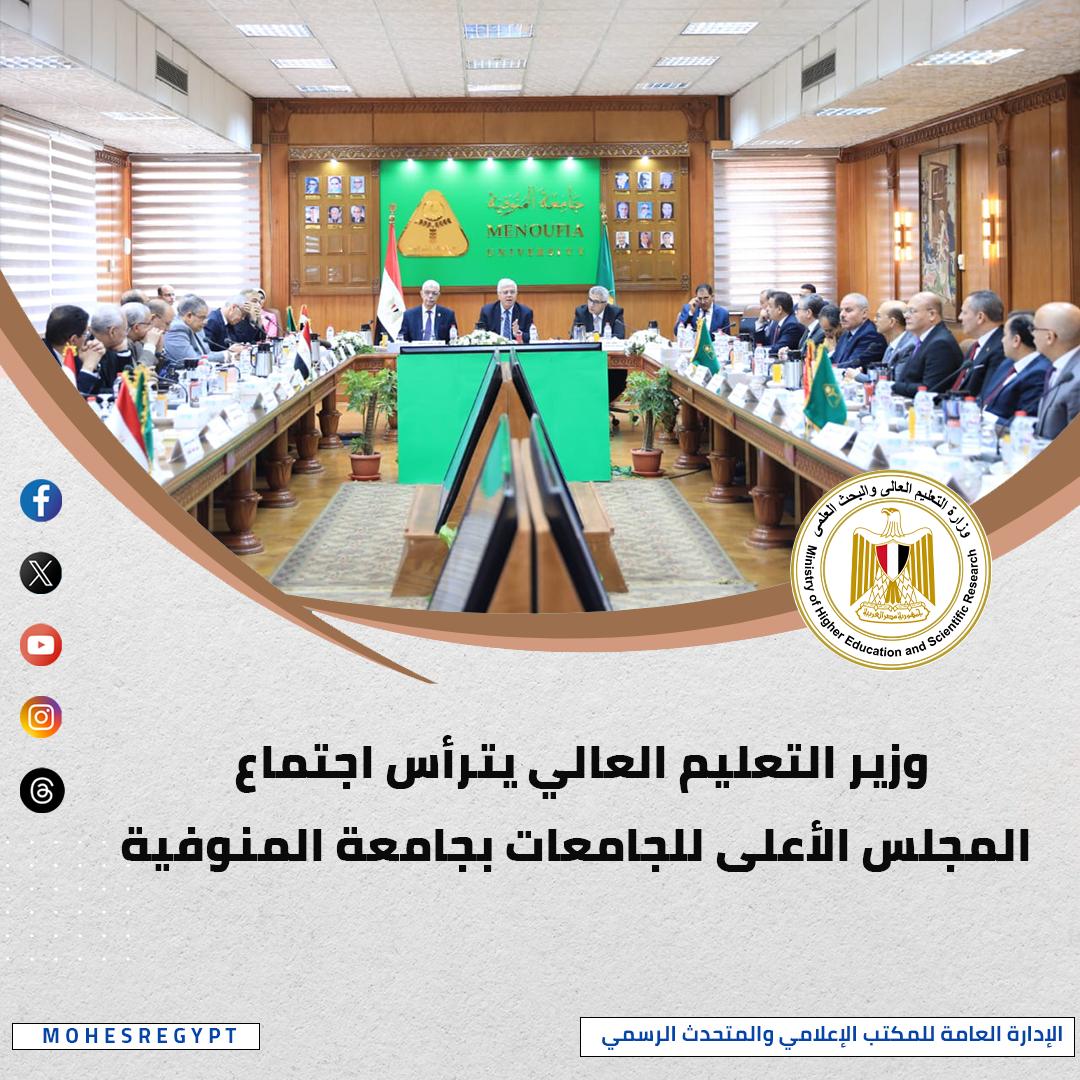 تواصل وزارة التعليم العالي والبحث العلمي جهودها لتطوير منظومة التعليم العالي والبحث العلمي في مصر، ودعم القضايا التنموية والمجتمعية.