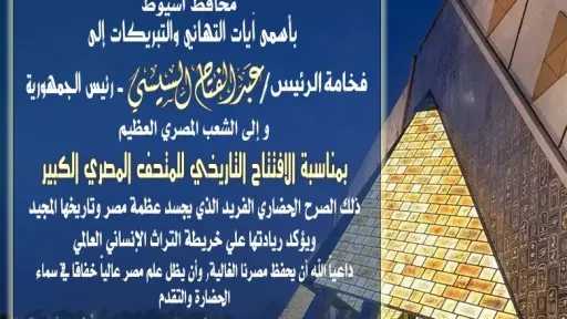 قال الرئيس عبد الفتاح السيسى: "من أرض مصر الطيبة.. مهد الحضارة الإنسانية، أرحب بضيوفنا من قادة العالم ورموزه الكبار، لنشهد سوياً افتتاح المتحف المصري الكبير الذي يضم بين جنباته كنوز الحضارة المصرية العريقة، ويجمع بين عبقرية المصري القديم وإبداع المصري المعاصر، ويضيف إلى عالم الثقافة والفنون معلما جديدا، يلتف حوله كل مهتم بالحضارة والمعرفة، ويفخر به كل مؤمن بوحدة الإنسانية وقيم السلام والمحبة والتعاون بين الشعوب.