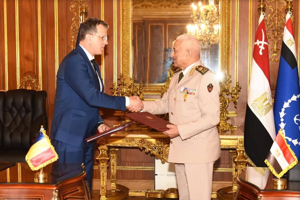 إلتقى الفريق أول عبد المجيد صقر القائد العام للقوات المسلحة وزير الدفاع والإنتاج الحربى السيد ليفيو إيونوت موشتينو وزير الدفاع الرومانى والوفد المرافق له الذى يزور مصر حالياً حيث أجريت له مراسم إستقبال رسمية بمقر الأمانة العامة لوزارة الدفاع وعزفت الموسيقات العسكرية السلام الوطنى لكلا البلدين .