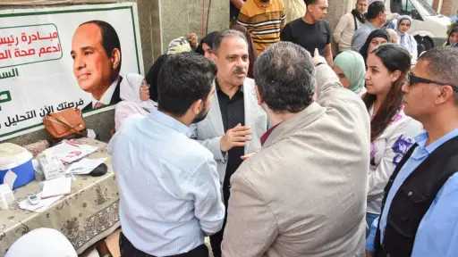 محافظ الشرقية يتفقد أعمال القافلةالطبيةالإستثنائيةالمجانيةالمقامةبالقنايات