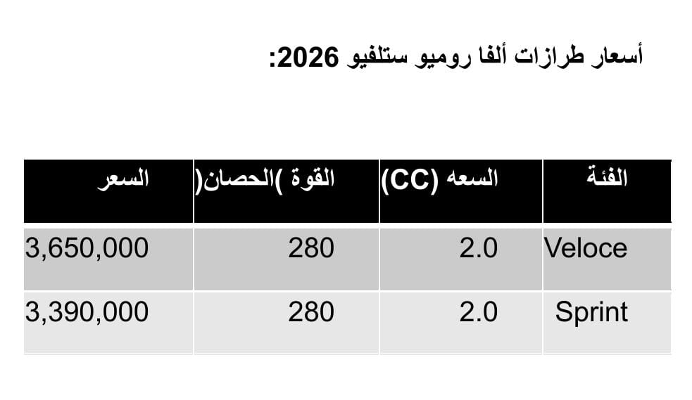 أسعار طرازات ألفا روميو ستلفيو 2026: