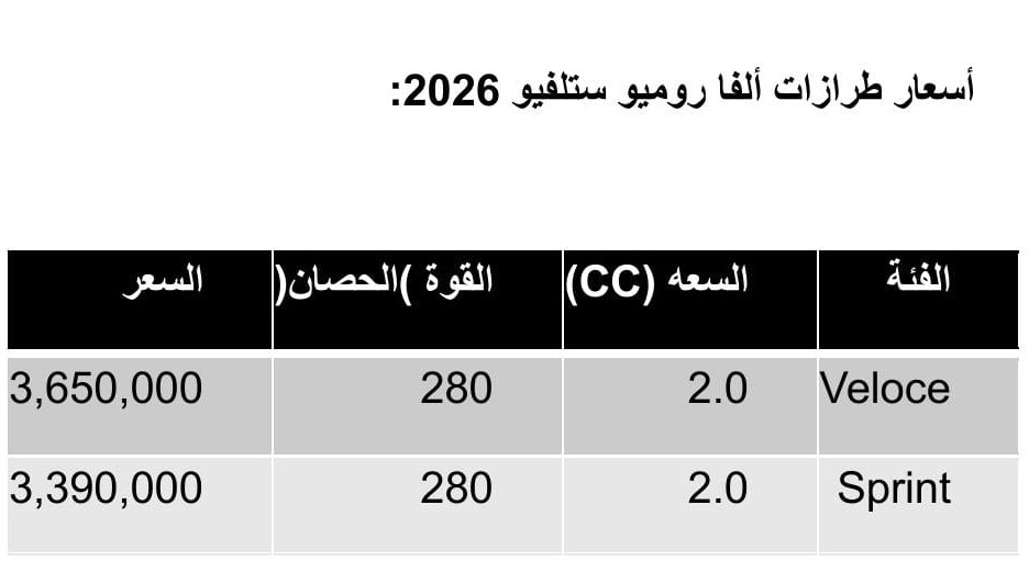 أسعار طرازات ألفا روميو ستلفيو 2026: