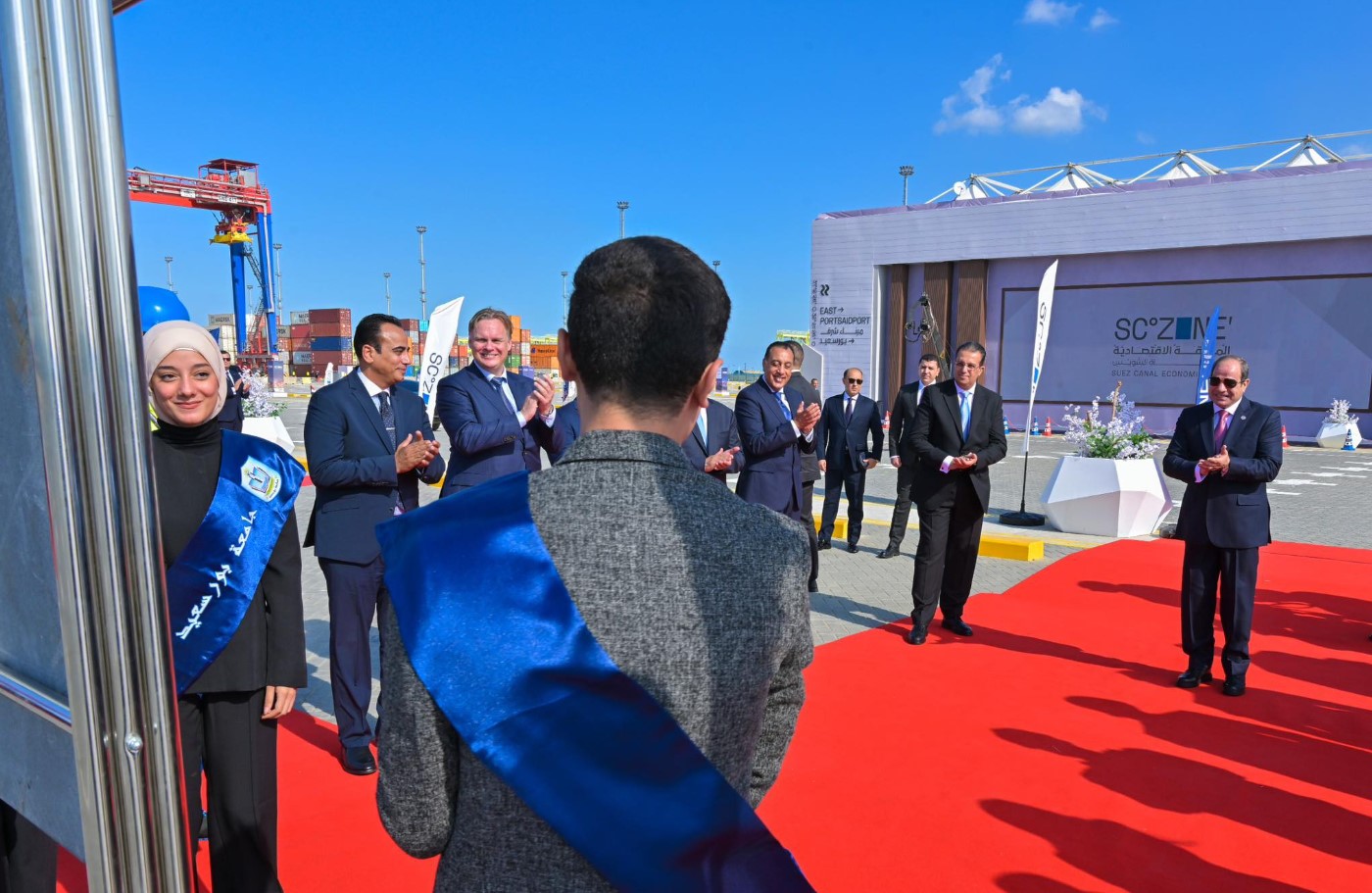 شهد السيد الرئيس عبد الفتاح السيسي، اليوم، افتتاح عدد من المحطات البحرية بالمنطقة الاقتصادية لقناة السويس بميناء شرق بورسعيد.