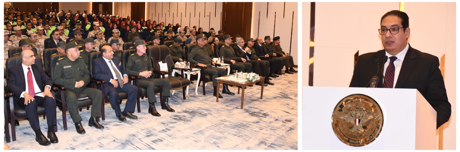 وألقى الأستاذ الدكتور محمـد سامى عبدالصادق رئيس جامعة القاهرة كلمة أشار خلالها إلى التعاون المثمر بين الأكاديمة العسكرية المصرية وجامعة القاهرة ، مشيراً إلى الجهود المخلصة التى تبذلها الأكاديمية العسكرية المصرية فى تأهيل الدارسين وفقاً لمنهج علمى وتدريبى متميز لصقل مهاراتهم والإرتقاء بمستوى وعيهم الوطنى .