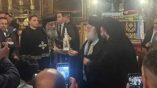 ويشارك في صلوات القداس عدد من المطارنة والكهنة والشمامسة، الذين اصطفوا في موكب كنسي مهيب تقدّمهم قداسة البابا ثيودورس الثاني، فيما صدحت ترانيم الميلاد التقليدية التي تعبّر عن فرحة الكنيسة بـ ميلاد السيد المسيح، وفق الطقس البيزنطي المتبع في الكنيسة الرومية الأرثوذكسية.