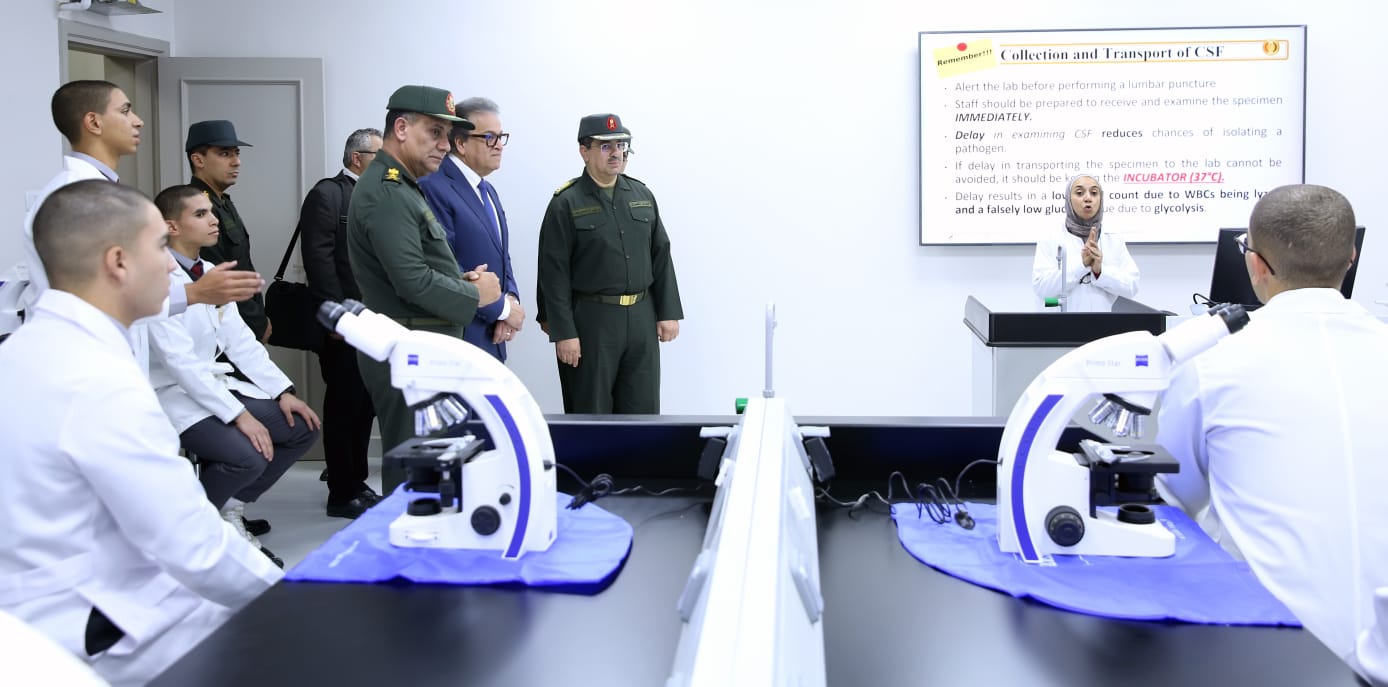 إستقبلت كلية الطب بالقوات المسلحة الدكتور خالد عبد الغفار نائب رئيس مجلس الوزراء للتنمية البشرية وزير الصحة والسكان يرافقه الفريق أشرف سالم زاهر مدير الأكاديمية العسكرية المصرية ، وذلك للإطلاع على منظومة التطوير والتحديث والرؤية المتكاملة التى تشهدها الكلية خلال الفترة الماضية والتى كان اخرها إلتحاق الدفعة (1) إناث بالصفة العسكرية والدفعة رقم (1) (ذكور – إناث) بالصفة المدنية بالإضافة إلى التطوير الشامل للقاعات والمعامل الدراسية وفندق إقامة الطلبة والملاعب الرياضية والنقطة الطبية بما يعكس الحرص على توفير كافة مقومات التميز وتطوير القدرات للكوادر البشرية وتوفير المناخ العلمى المناسب للإرتقاء بجودة العملية التعليمية على المستوى الطبى .