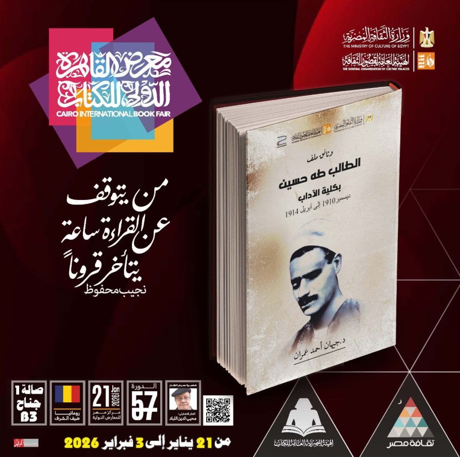 صدر عن الهيئة العامة لقصور الثقافة برئاسة اللواء خالد اللبان، كتاب "وثائق ملف الطالب طه حسين بكلية الآداب ديسمبر 1910 - أبريل 2014" للدكتورة جيهان أحمد عمران، وذلك ضمن إصدارات سلسلة "الطبعة الثانية"، بمعرض القاهرة الدولي للكتاب في دورته الـ57، بمركز مصر للمعارض الدولية بالتجمع الخامس.