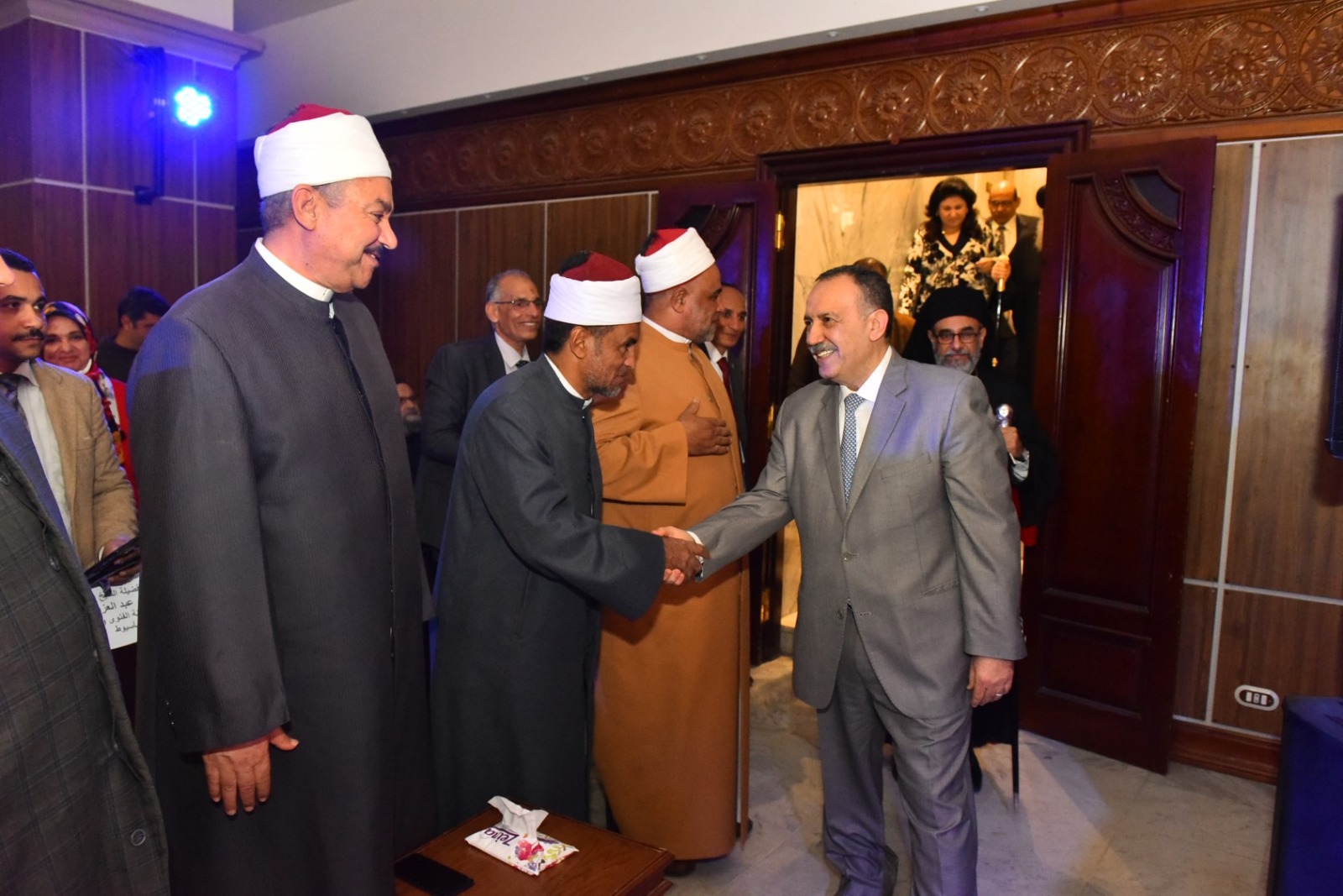 وأضاف المحافظ أن السلام يعد الركيزة الأولى للاستقرار والتنمية، مشيرًا إلى أن هذه الفعالية تحمل رسالة إنسانية راقية تعكس وعي المجتمع وتكاتف المؤسسات الدينية في مواجهة التحديات، وتسهم في ترسيخ القيم الأخلاقية ونشر ثقافة السلام ونبذ العنف والتطرف، وبث الطمأنينة والأمل في نفوس المواطنين، خاصة في ظل ما يشهده العالم من أزمات وتحديات متلاحقة.