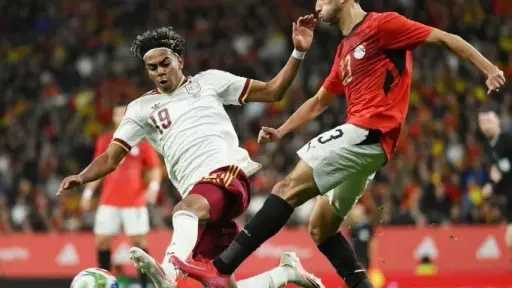 وتعادل منتخب مصر سلبيا مع نظيره الإسباني المصنف الأول عالميا، في المباراة التي جرت اليوم ملعب «آر سي دي إي» في كورنيلا إل برات، بمدينة برشلونة، ضمن استعدادات المنتخبين للمشاركة فى بطولة كأس العالم 2026 التي تستضيفها الولايات المتحدة وكندا والمكسيك.