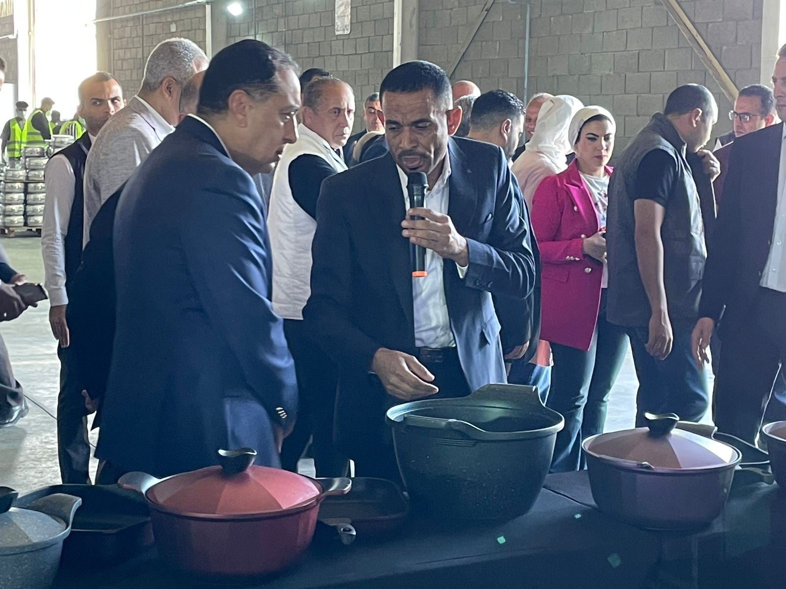 تفقد الدكتور مصطفى مدبولي رئيس مجلس الوزراء أحد مصانع أواني الطهي بالمنطقة الصناعية بالسخنة التابعة للهيئة الاقتصادية لقناة السويس.