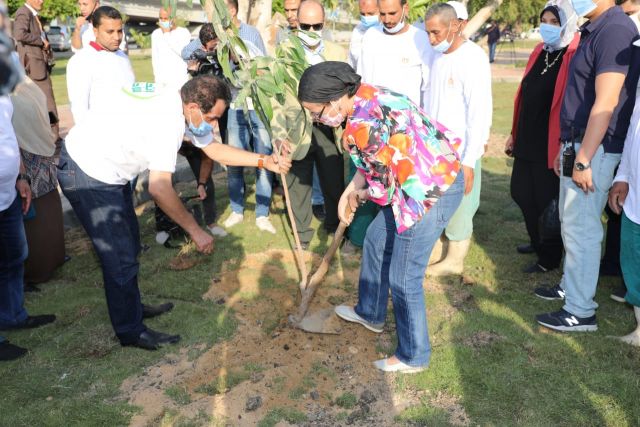 وزيرة البيئة تقود حملة تشجير فى حى مصر الجديدة