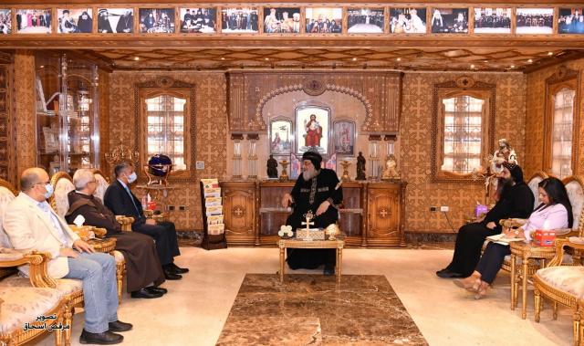 وتمنى قداسة البابا لهم التوفيق والنجاح في عملهم الجديد، ودار حوار معهم حول دور الكنائس القبطية في المهجر ولاسيما الخدمات الطبية التي تقدمها الكنيسة في أفريقيا، كما تناول اللقاء أهمية تنشيط الدعوة لزيارة مسار العائلة المقدسة، في مصر.