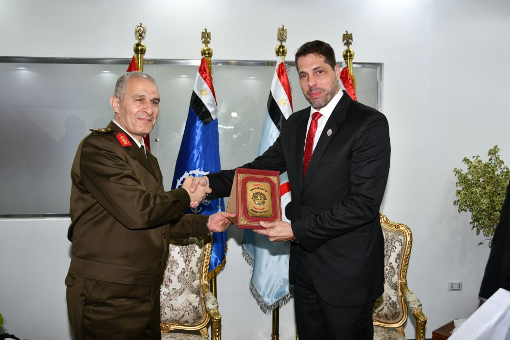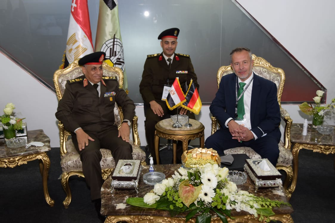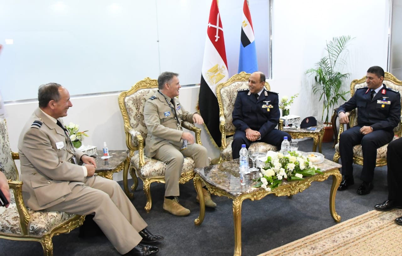 فيما إلتقى الفريق محمد حجازى قائد قوات الدفاع الجوى بالعميد أوليفيه لكونت مسئول تنمية العلاقات للشرق الأوسط وإفريقيا بهيئة التسليح الفرنسية ، والسيد ديتر شميدت نائب رئيس شركة هينسولت الألمانية .